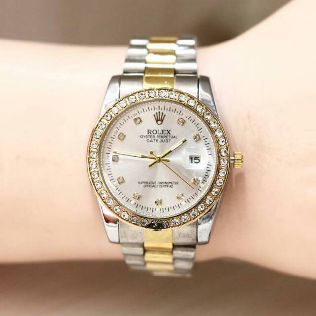 Posting komentar (atom) cari blog ini.. Harga jam tangan wanita rolex date full diamond romawi gold. Jam tangan replika rolex daydate full diamond automatic jpn. Harga jam tangan wanita/ cewek rolex ring diamond. Jam tangan rolex submariner totone diamond terbuat dari bahan stainless steel pilihan, paduan warna emas dan hitam yang elegan, black dial dengan sentuhan berlian, oyster bracelet, dan undirectional rotatable bezel. Jam tangan rolex wanita terbaru... Promo & diskon murah ⚡100% original 15 hari retur ⌛ pengiriman cepat gratis ongkir